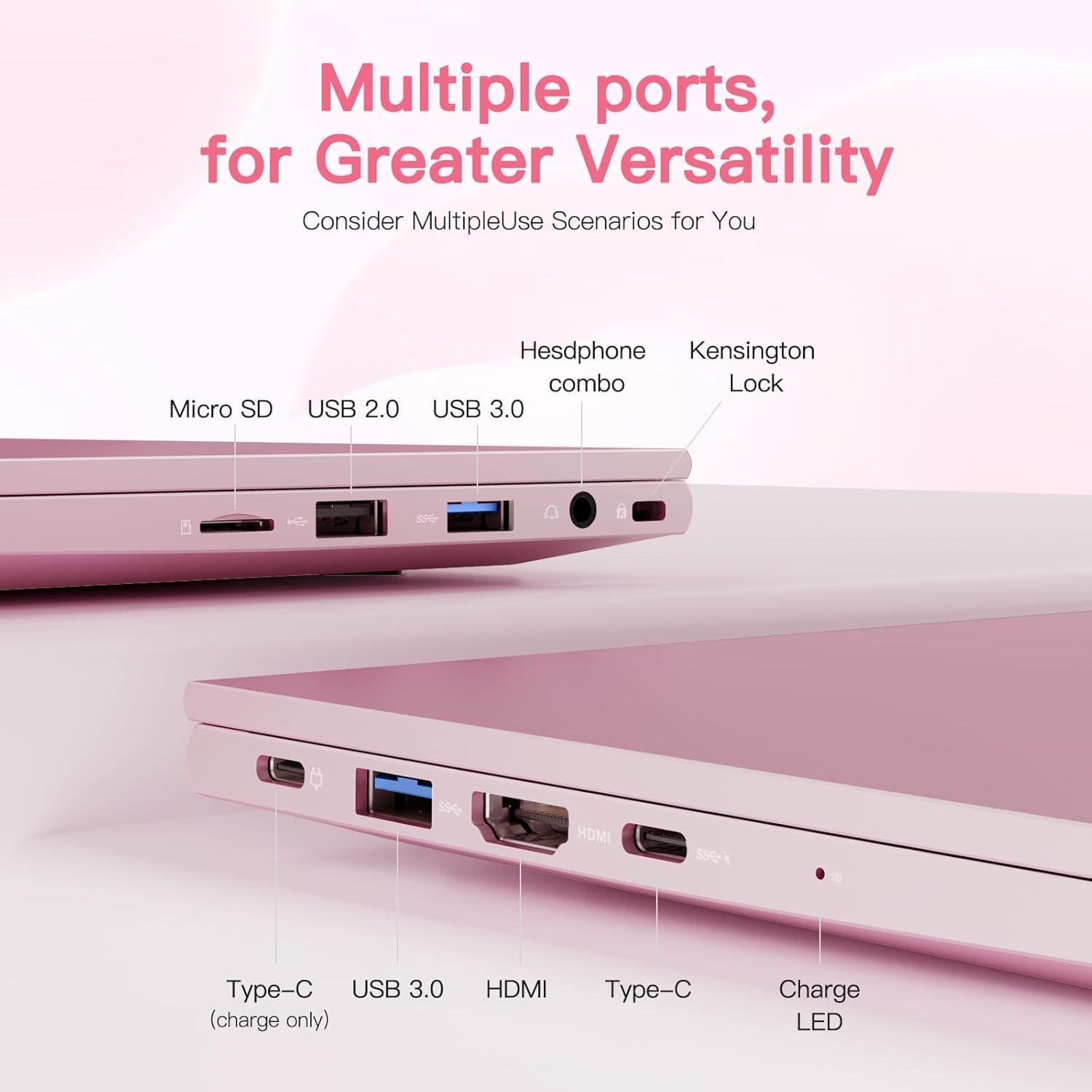 15.6-FHD-Laptop Student-Laptop, 16GB RAM 256GB SSD, Intel Pentium Quad-Core N100 Processor (Up to 3.4GHz) Backlit Keyboard Fingerprint WiFi 6 BT5.2 Business-Laptop, 2 Years Warranty Windows 11 Laptop(Rose Gold)