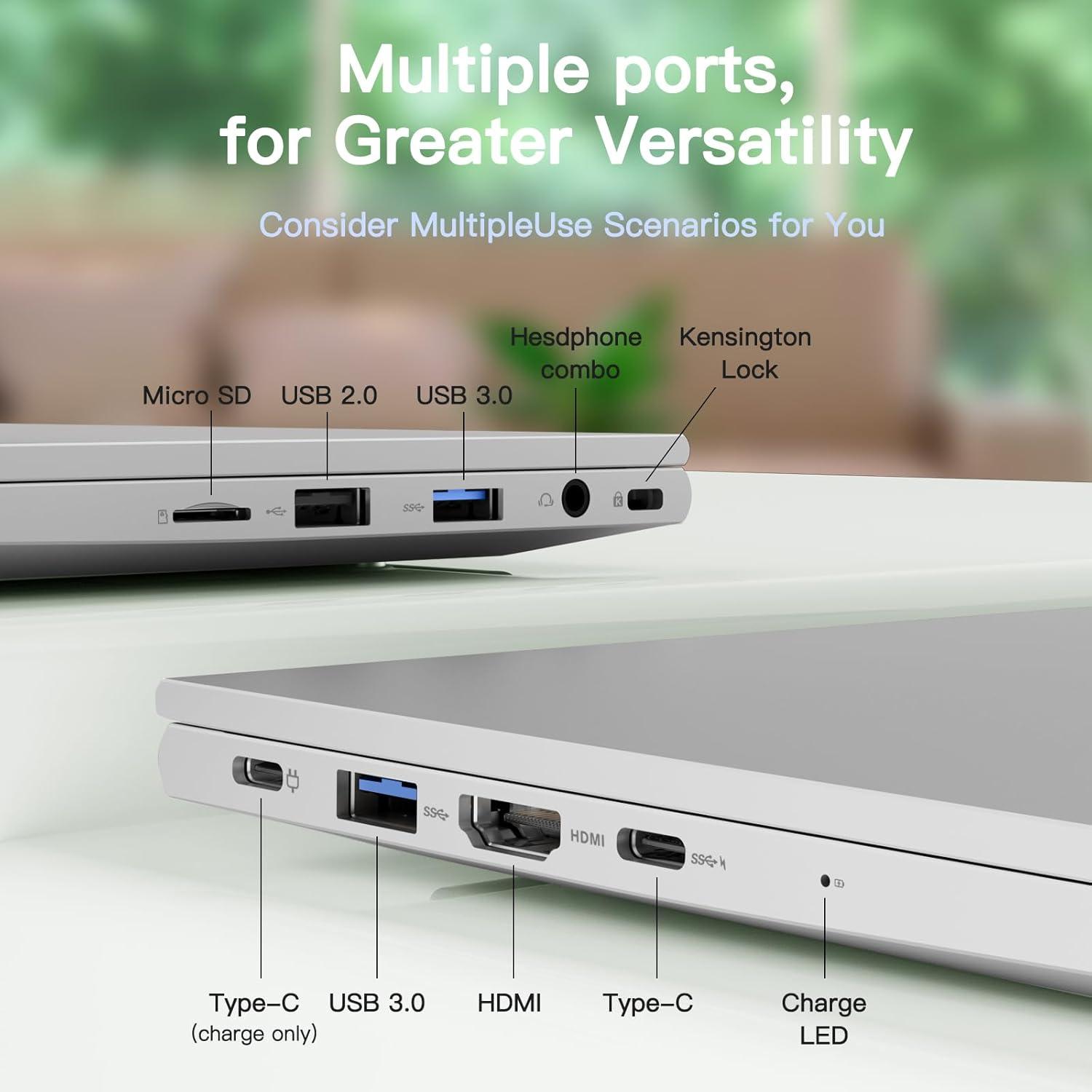 High Performance: Powered by the 12th Gen Intel Alder Lake-N100 processor with 4 cores and 4 threads, the Nimo laptop delivers up to 3.4GHz performance. The Nimo laptop’s advanced Gracemont core design ensures 45% better efficiency, providing smooth multitasking for work, study, and entertainment.
