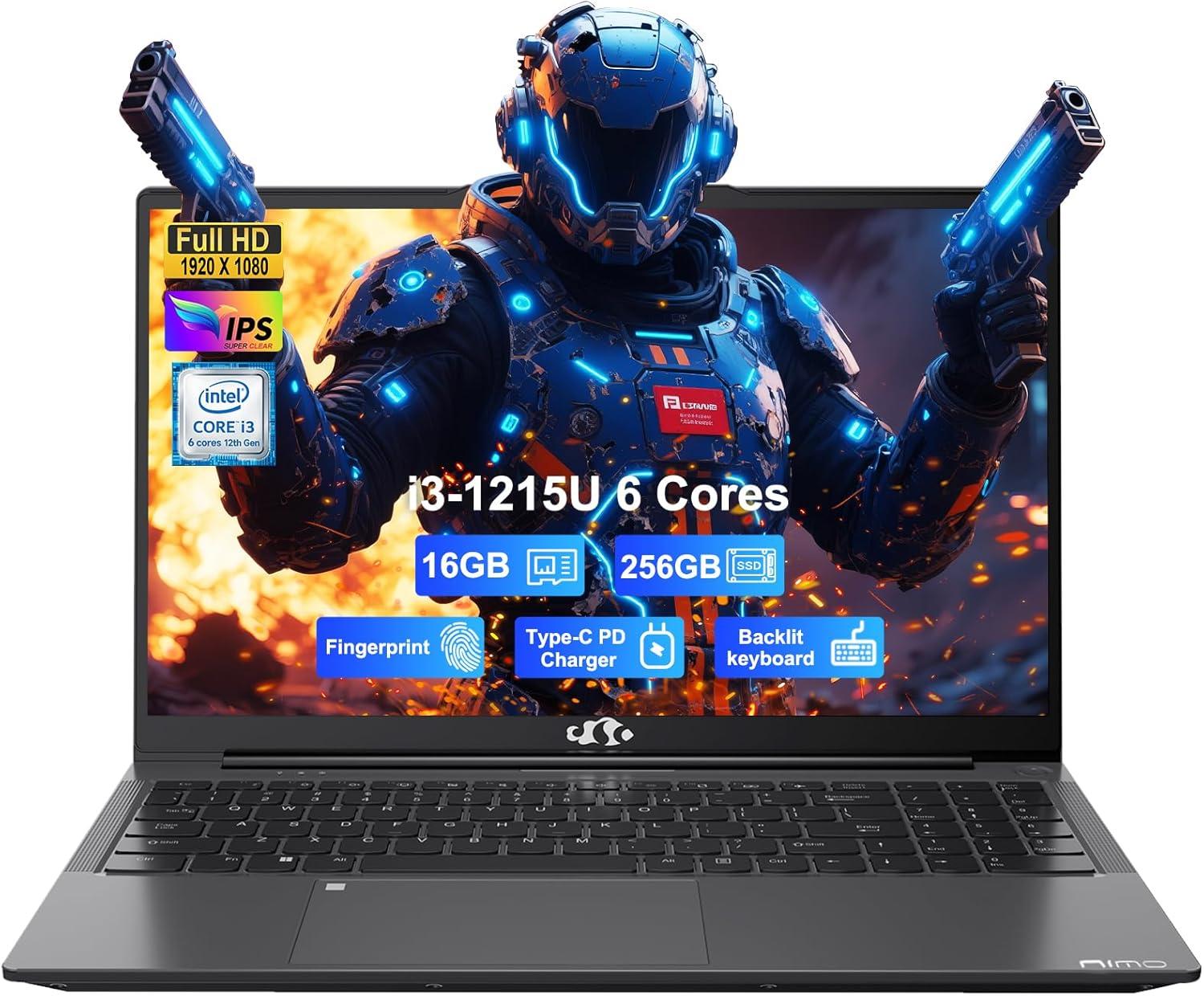 NIMO 15.6″ IPS FHD-Business-Laptop, Intel 6 Core i3-1215U 8GB RAM 256GB SSD (Beat i5-1135G7, Up to 4.4GHz) Computer with Backlit Keyboard Fingerprint 65W Type C Wi-Fi 6 Numpad Win 11(Gray)