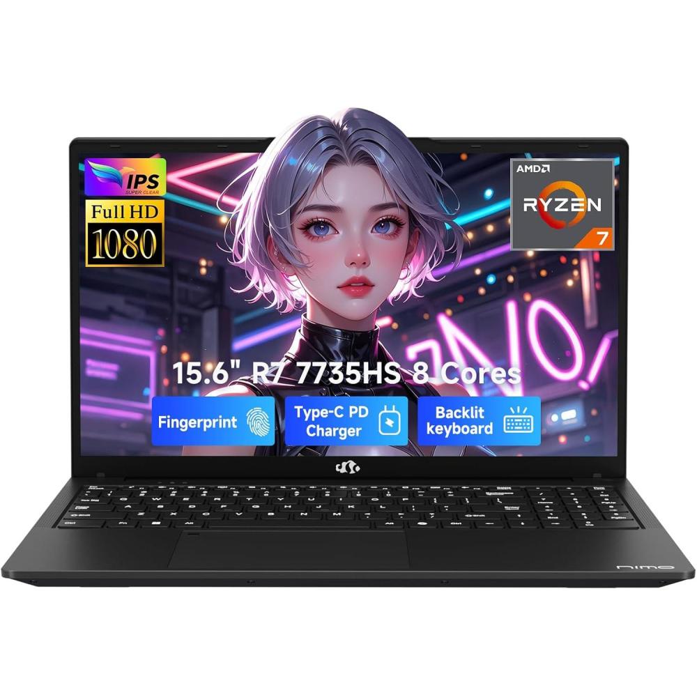 NIMO 15.6″ IPS FHD Gaming-Laptop, AMD Ryzen 7 7735HS 32GB DDR5 RAM 1TB SSD (8C/16T, Up to 4.75GHz) Business-Computer with Radeon 680M Graphics 100W Type-C Backlit Keyboard Fingerprint(Black)