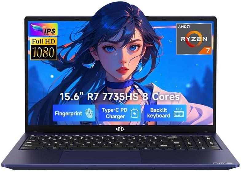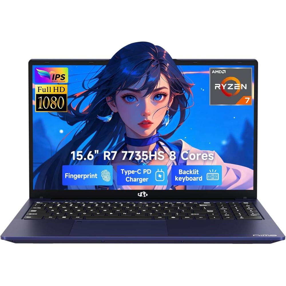 NIMO 15.6″ IPS FHD Gaming-Laptop, AMD Ryzen 7 7735HS 32GB DDR5 RAM 1TB SSD (8C/16T, Up to 4.75GHz) Business-Computer with Radeon 680M Graphics 100W Type-C Backlit Keyboard Fingerprint(Blue)