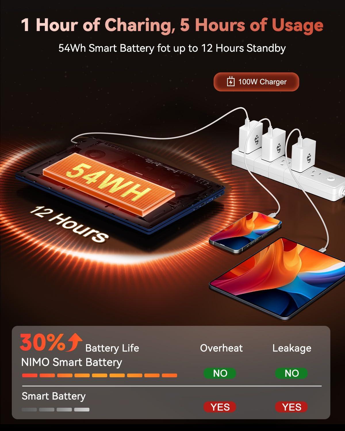 【Premium & Durable Metal Build】The NIMO laptop features a durable metal shell and is built for performance that lasts. This premium casing combines a sleek aesthetic with robust protection, ensuring your device remains secure and looks professional on any desk.