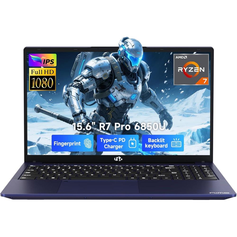 NIMO 15.6" Light-Gaming-Laptop, 8 Cores AMD Ryzen 7 Pro 6850U 16GB LPDDR5 RAM 512GB SSD (Beat i7-1360P Up to 4.7GHz) AMD Radeon 680M GPU IPS FHD Computer with 100W Type-C Charger Fingerprint BK(Blue)