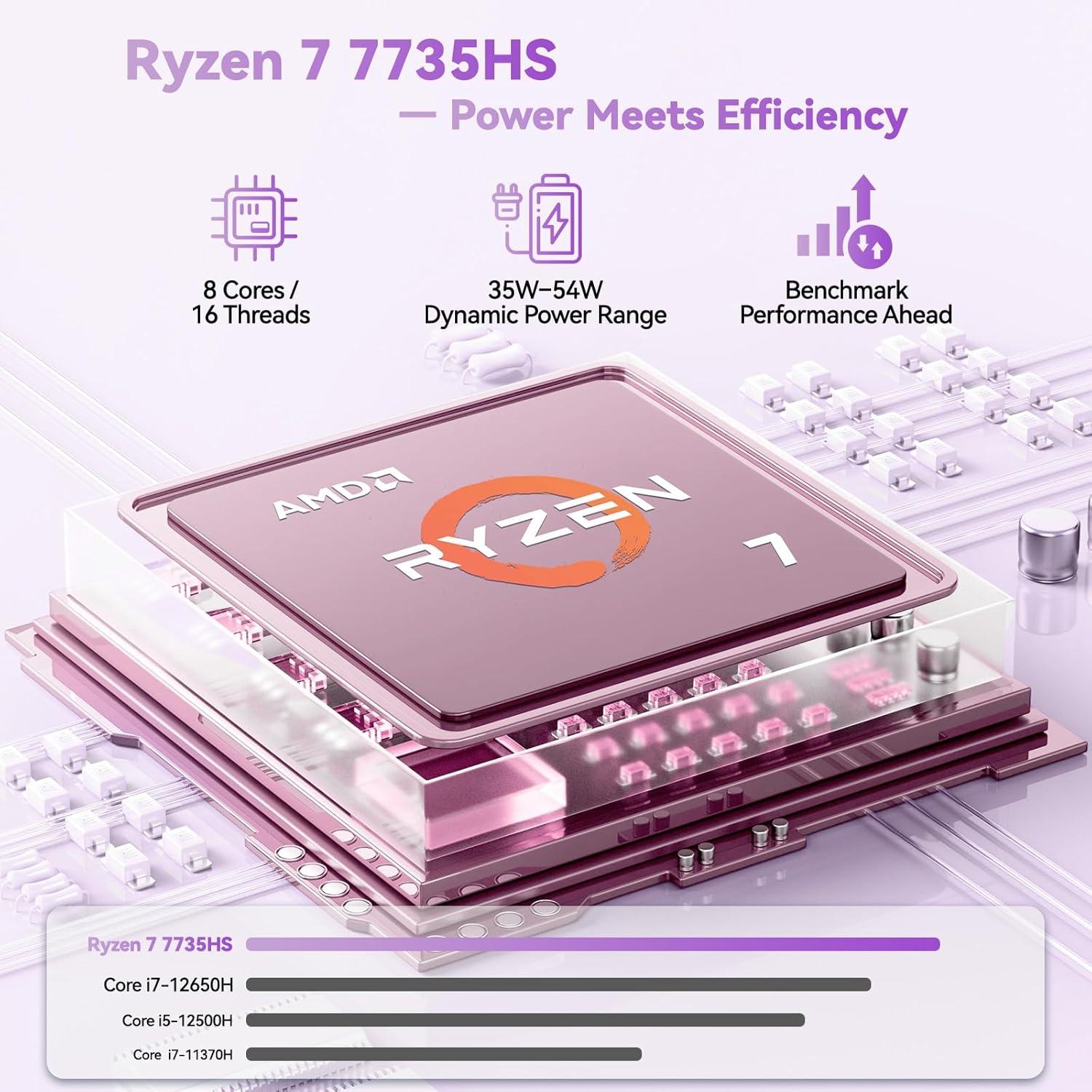 【Powerful AMD Ryzen 7 7735HS Processor】Equipped with the AMD Ryzen 7 7735HS processor (8 cores and 16 threads) and integrated Radeon 680M graphics, this laptop delivers responsive and stable performance for light gaming, creative projects, and demanding professional applications, balancing power and energy efficiency.